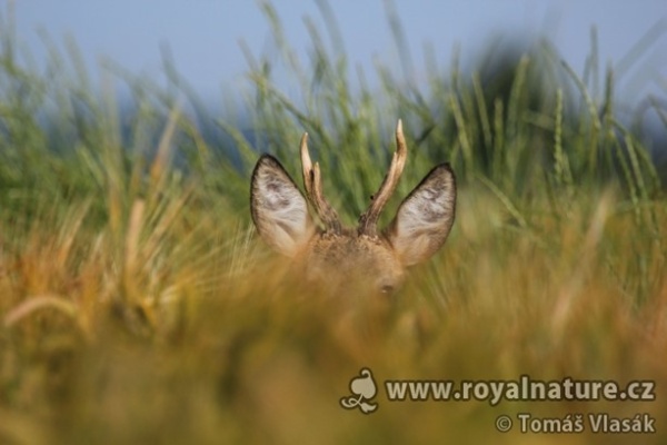 Ranní rosa, blankytně modrá obloha rozzářená sluncem, zlátnoucí a aromaticky provoněné klasy ječmene, neúnavné cvrlikání lučních kobylek a sarančat či švitořivý hlas skřivanů poletujících nad rozsáhlými lány obilí. I kos v černém fraku se svým flétnovým hlasem vítá nový den. Ano, ráno se vším všudy! To však ještě netuším, co se skrývá v lánu ječmene. Pomalým krokem postupuji v kolejnici od traktoru, když si vtom přede mnou všimnu vyčnívajících parůžků srnce skrývajících se za klasy. Zastavuji, kontroluji směr větru a poté se přibližuji k srnečkovi asi na deset metrů. Srnec zbystřuje a větří, avšak marně. Slabý vánek nesoucí se nad lánem obilí stál při mně. Neváhám ani minutu a připravuji se k fotografování. Pořizuji první snímky a asi po šestém cvaknutí závěrky srnec odbíhá. Bylo to jedno krásné představení, které se odehrávalo v době mé přítomnosti. Dnes stále cítím tu aromatickou vůni obilí, stále slyším cvrlikání lučních kobylek a sarančat či švitořivý hlas skřivanů nesoucí se nad rozsáhlými lány zrajícího ječmene.