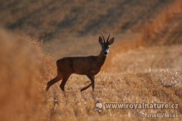 Je začátek srnčí říje. Na svoji oblíbenou lokalitu přicházím ještě před svítáním, usedám na okraji strniště s připraveným fotoaparátem zavěšeným na krku. Čekám na východ slunce a vyhlížím prvního dnešního srnce. Zanedlouho jsem jej spatřil postávat asi dvě stě metrů ode mne, na mezi podél železniční tratě. Stál na místě v klidu asi pět minut, otáčel pouze hlavou ze strany na stranu a pozoroval okolí. Měl jsem dobrý vítr i sluncem osvícenou scénu. Byla to jedinečná příležitost začít srnce vábit. Na hlas vábničky reagoval okamžitě. Nejistil ani minutu a za hlasem vábničky se přímo rozeběhl. Zarazil kousek přede mnou. To už jsem pořizoval první snímky s tímto srnčím suverénem. Po pár cvaknutích závěrky srnec znejistil a odskočil do houštiny. I toto setkání bylo pro mne nezapomenutelným zážitkem a přineslo velký úspěch v podobě krásných fotografií.